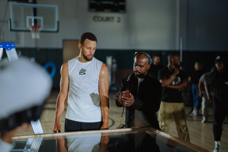 The art department delivered an incredible lift on a tight turnaround, building multiple custom environments, including a massive gradient backdrop, a rotating basketball platform, a glossy black plexiglass set, and an elevated transparent floor designed for dramatic under-foot shots. Every build played a role in shaping the visual identity of the Series 7 world.